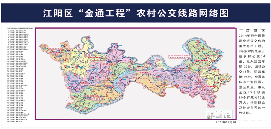 助力龍馬潭區(qū)以公交為紐帶實現了半小時經濟圈,在江陽區(qū)實現全域公交村村通。江陽區(qū)54條農村公交線路惠及群眾50萬人。在目前的公交線路中,全域公交、農村公交線路占比達34%,江陽區(qū)“金通工程”全域公交先后2次在全省作經驗交流,并獲得“四川省鄉(xiāng)村運輸金通工程樣板縣”殊榮。